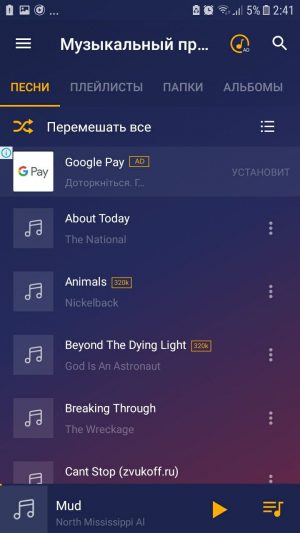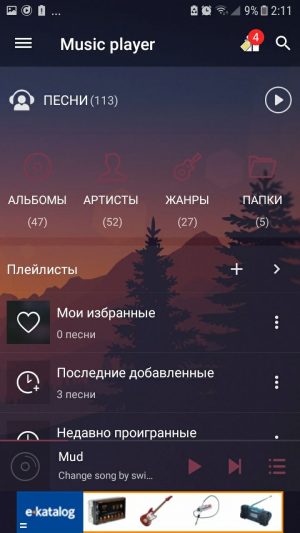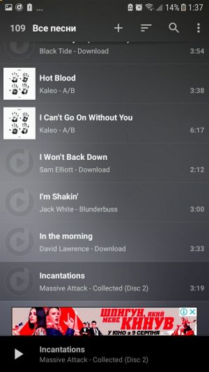 Alors, qu'est-ce que ce joueur mérite une place en haut du classement? Il n'est pas conçu pour regarder des vidéos. Mais sans aucun doute, il peut être appelé le meilleur lecteur de musique pour Android, en raison de ses propriétés inhabituelles: