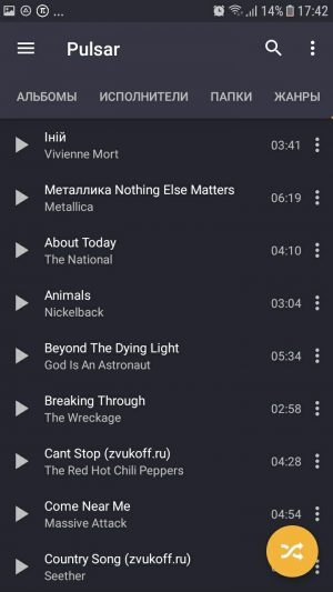 - ne prend que la 8e place, car la version gratuite du lecteur a des capacités très limitées. Une fonctionnalité plus avancée est fournie par la version payante du programme Pulsar Music Player Pro. En elle sont disponibles: