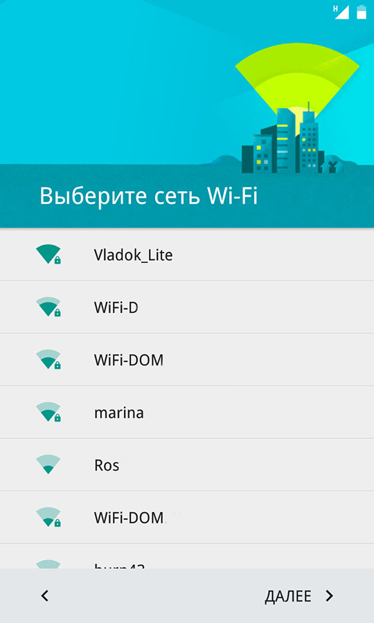 Après avoir sélectionné un réseau Wi-Fi et saisi un mot de passe, les données sur cette connexion seront enregistrées sans nécessiter de nouvelle saisie. L'étape suivante consiste à créer un compte pour les services de smartphone, selon le fabricant, cela est fait pour utiliser pleinement les programmes de Google et de la boutique Google Play ou pour les applications d'Apple et de leur iTunes.