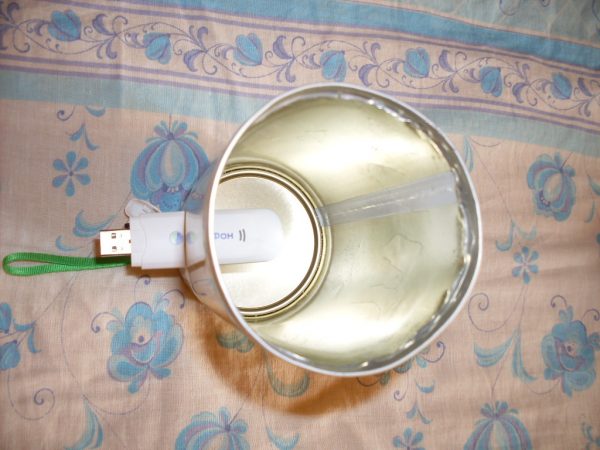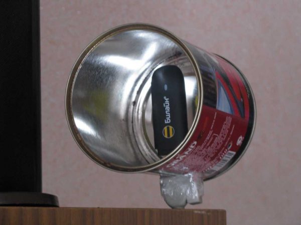 Habituellement, cette mesure consiste à mieux positionner le modem et à diriger son antenne standard dans la direction souhaitée (vers la tour). À ces fins, une boîte de conserve ordinaire, une vieille casserole, de la vaisselle ou même un simple disque peuvent convenir.