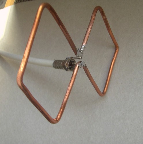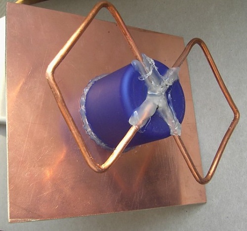- Ainsi, l'élément clé de l'antenne de Kharchenko est l'élément principal qui reçoit le signal. Pour la fréquence de 2100 MHz, sur laquelle l'Internet mobile est transmis, vous devez choisir un fil de cuivre d'une section de 3,5 à 4 mm. À l'aide de pinces, il est nécessaire de définir la forme de deux losanges à l'aide de pinces (au cours des expériences, il s'est avéré que c'est la meilleure forme pour recevoir un signal, bien qu'il existe des modèles bicquadars de l'antenne Harchenko où quatre losanges sont connectés en série). Il est très important d'observer la longueur de chaque côté. Elle doit être de 53 mm pour une bonne réception de la longueur d'onde (143 mm). En général, il existe des tableaux pour calculer le côté des faces pour une longueur d'onde donnée.