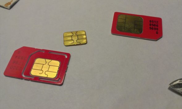 En parlant des mêmes tailles, le problème suivant se pose parfois: les opérateurs distribuent des cartes d'une carte SIM de taille standard, mais effectuent des coupes pour les cartes Micro et Nano SIM. Si les contacts du plateau de la carte SIM sont très élastiques, ils peuvent éventuellement pousser une taille plus petite hors de la section. Soit essayez de remettre tout à son état d'origine et de le réparer, soit demandez à l'opérateur un remplacement si un tel problème se reproduit très souvent.