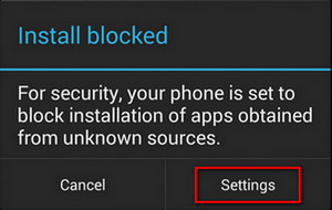 - Si un avertissement apparaît sur l'écran du smartphone indiquant que l'installation de programmes provenant de sources tierces est bloquée, allez dans "Paramètres" et cochez devant l'élément "Sources inconnues".