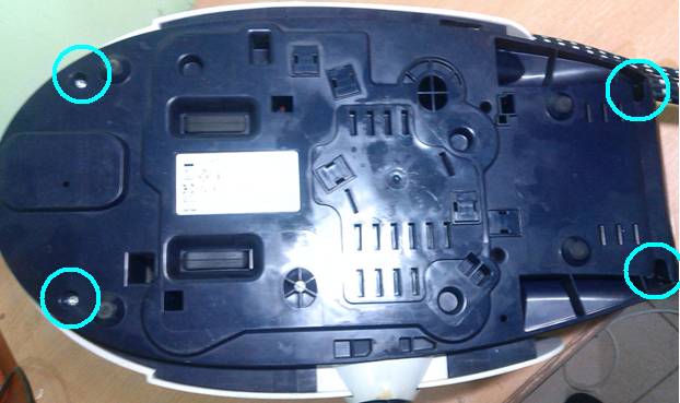 12. Après avoir retiré le capuchon du régulateur, dévissez les vis fixant le réservoir au fond du fer. Sur de nombreux modèles de générateurs de vapeur, il y a quatre vis de ce type, deux vis de chaque côté du boîtier de l'appareil.