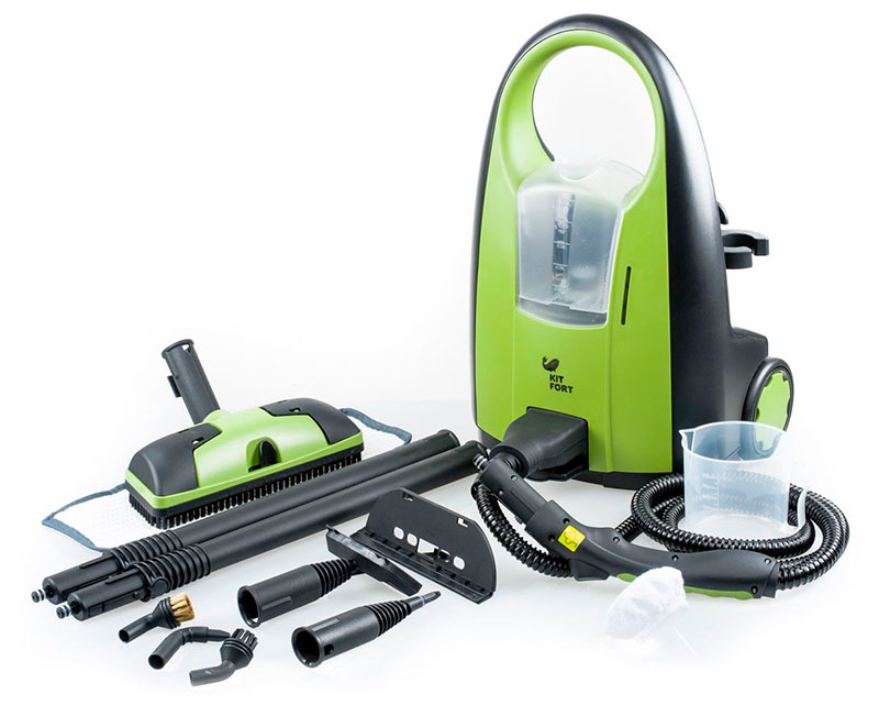 - Kitfort KT-903. L'appareil est conçu pour un fonctionnement continu sans interruption jusqu'à 60 minutes. Nettoyeur vapeur au sol fiable et polyvalent avec de nombreux accessoires inclus. Il peut être utilisé pour un nettoyage efficace, le nettoyage des meubles et des jouets rembourrés, le lavage des fenêtres et des portes. Moins - un petit réservoir d'eau et un poids décent de l'appareil.