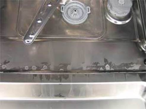 Si ces mesures ne sont pas suivies, un revêtement blanc apparaîtra. Dans ce cas, il est préférable de rincer la vaisselle sous le robinet et d'essuyer l'intérieur de la machine avec un chiffon humide.