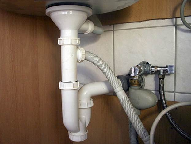 Un endroit idéal pour connecter l'équipement est sous l'évier (sur un siphon en plastique de cuisine avec buses). Ainsi, les odeurs de l'égout n'entreront pas dans la maison. Les blocages ne se forment pas en raison de la surface lisse du plastique.