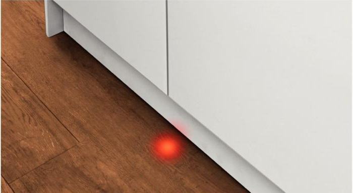 Il est très important de savoir où se situe l'indicateur principal de la préparation du lave-vaisselle au travail. Il est situé au bas de l'armoire et apparaît sur le sol sous la forme d'un point rouge. Peu d'utilisateurs connaissent cette fonctionnalité.