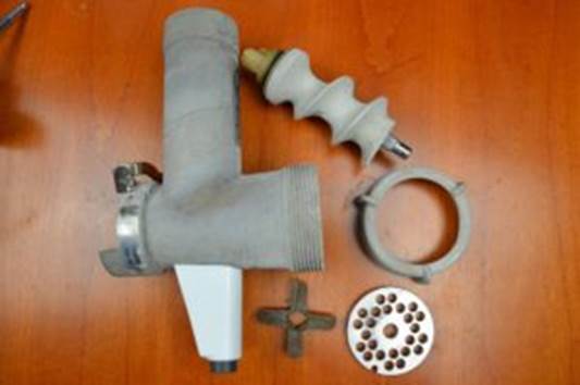 Pour commencer, il est recommandé démonter le hachoir à viande et vérifiez si les accessoires sont endommagés. Même en l'absence d'un tel, il est recommandé à des fins préventives de tenir les accessoires dans une solution savonneuse. Il arrive souvent qu'au niveau de la vis ou du couteau, les hachoirs à viande commencent à denteler les lames. Cela affecte la qualité du hachoir à viande et rend difficile le défilement de la farce à l'intérieur. C'est un signe certain de corrosion du métal. Dans ce cas, tous les efforts sont inutiles et vous devrez en acheter de nouveaux.