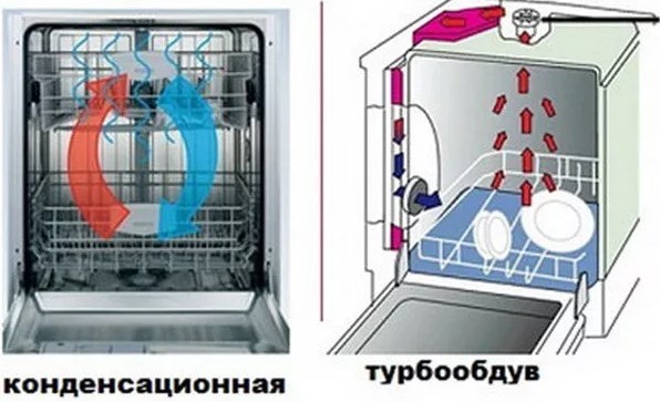 - turbosushka - de l'air chaud est pompé sur la vaisselle; ici, il est possible un dysfonctionnement ou une panne complète du radiateur.