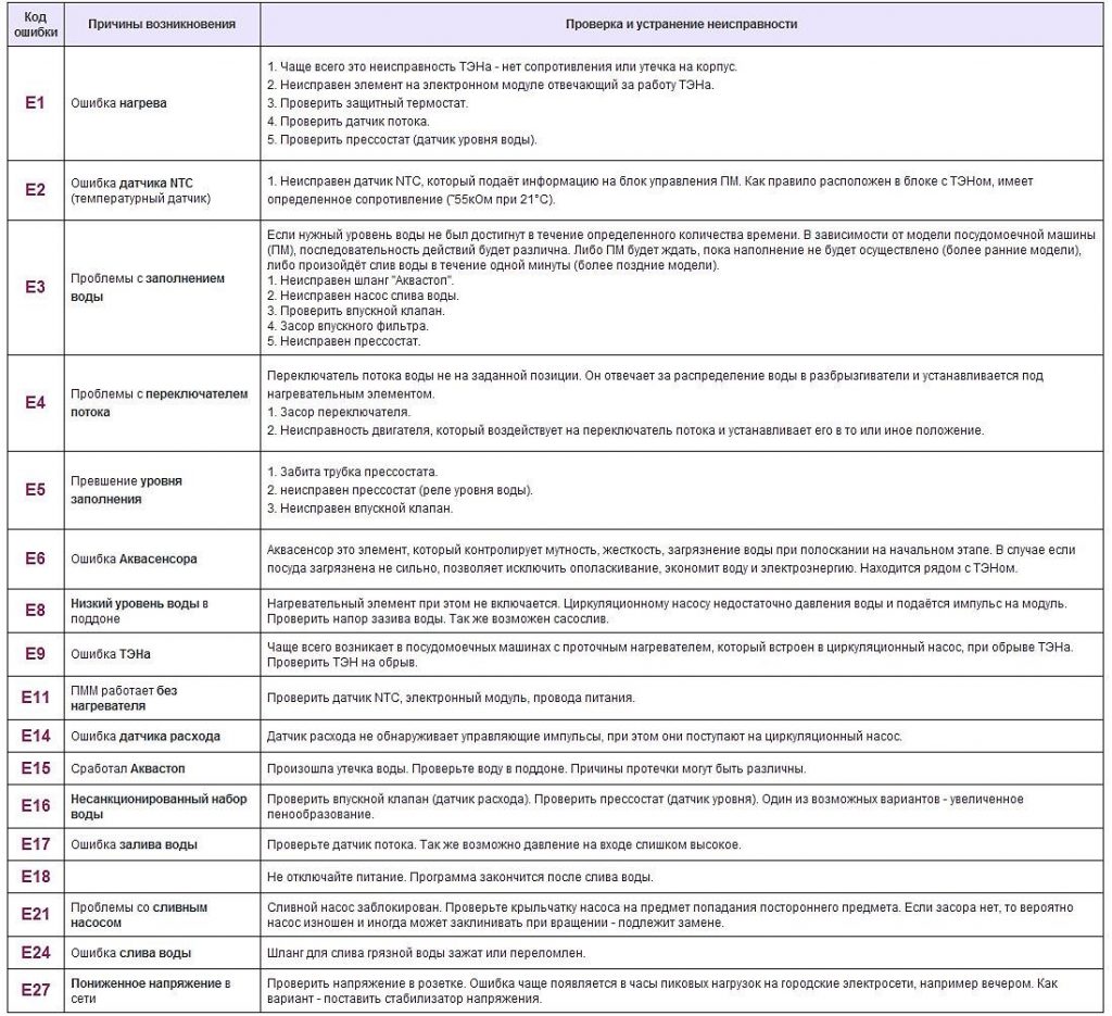 Pour comprendre l'essence du problème, vous devez comprendre ce qui est devenu provoquer une erreur de lave-vaisselle. Chaque fabricant d'un tel appareil comme un lave-vaisselle peut impliquer des dysfonctionnements complètement différents. Par conséquent, il est important de comprendre ce que signifie exactement si votre lave-vaisselle affiche l'erreur e15. Les informations à ce sujet doivent être indiquées par le fabricant dans le manuel d'utilisation joint à tout produit. Malheureusement, dans la plupart des cas, nous ne nous y tournons que lorsque quelque chose se casse, mais là vous pouvez voir comment l'erreur e15 est décryptée, et vous pouvez comprendre ce qui est allumé, ce qui coule ou ce qui est déconnecté et a provoqué une panne. Après avoir déterminé la cause de la panne selon les instructions, il est possible de corriger la situation.
