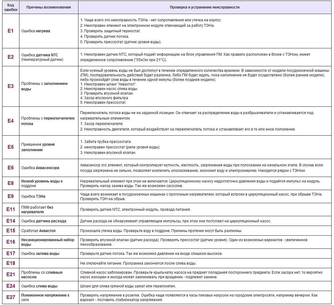 Pour que votre lave-vaisselle ne donne pas une erreur e15, il est nécessaire d'approcher soigneusement son fonctionnement, de ne pas surcharger, de se livrer aux produits de nettoyage, aux accessoires d'entretien.