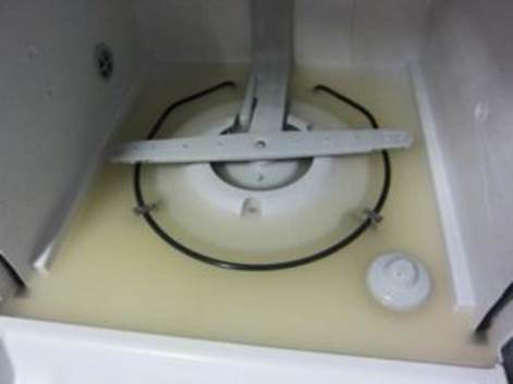 De temps en temps sur la surface des pièces du lave-vaisselle un revêtement blanc se produit - résidus sédimentaires de sels minéraux. Cela se produit dans les maisons où l'eau du robinet a une teneur élevée en sels de potassium et en eau de Javel - ce que l'on appelle l'eau dure.