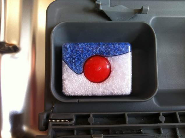 Le liquide de rinçage doit être versé dans ce compartiment avant d'activer la fonction «lavage», n'oubliez pas d'ajouter de la poudre dans le compartiment adjacent. Nous répondrons à la question commune: "Combien de liquide de rinçage devez-vous ajouter au lave-vaisselle?" Habituellement, cela est déterminé individuellement, d'autant plus que presque tous les fabricants écrivent nécessairement sur l'emballage la méthode d'application.Cependant, gardez à l'esprit que le plus souvent, les fabricants surestiment un seul dosage, car il est avantageux pour lui de terminer l'emballage le plus tôt possible, afin que vous puissiez retourner au magasin pour ses produits.