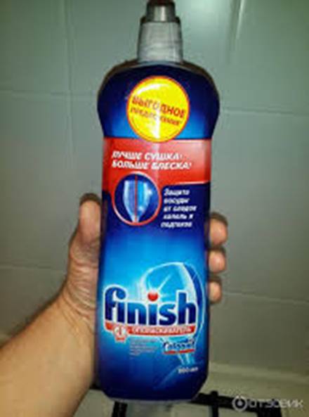 Un outil très courant aujourd'hui est le rinçage de finition, qui a de nombreuses critiques positives de milliers de consommateurs. Ce médicament élimine parfaitement les taches, favorise un séchage rapide de la vaisselle et prolonge la durée de vie du lave-vaisselle car il ne permet pas aux pièces métalliques de s'oxyder. L'outil est assez budgétaire et abordable pour tout le monde et donne un excellent résultat. En outre, les fabricants produisent également des comprimés spéciaux du même nom pour le traitement de la vaisselle et entretien supplémentaire du lave-vaisselle.