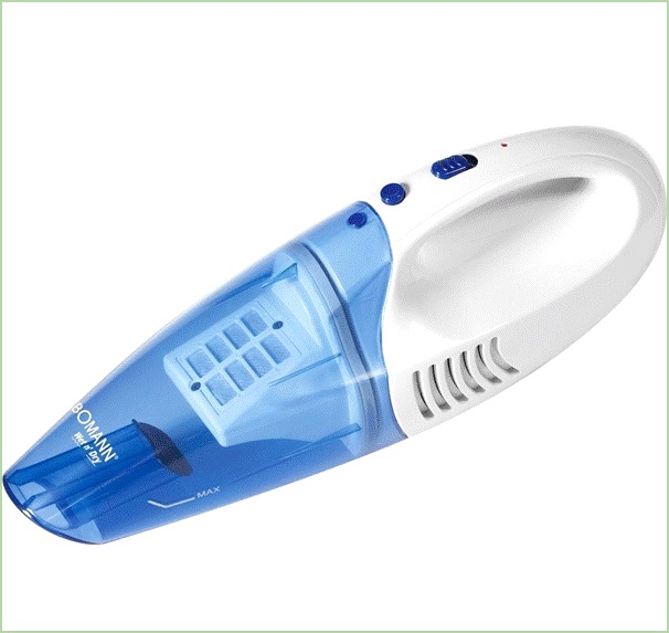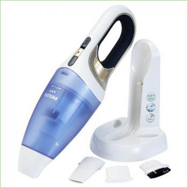 - Dépoussiéreur manuel. Diffère en petite taille. Charge avec un cordon. Dans les voitures, vous pouvez recharger à l'aide d'un allume-cigare.