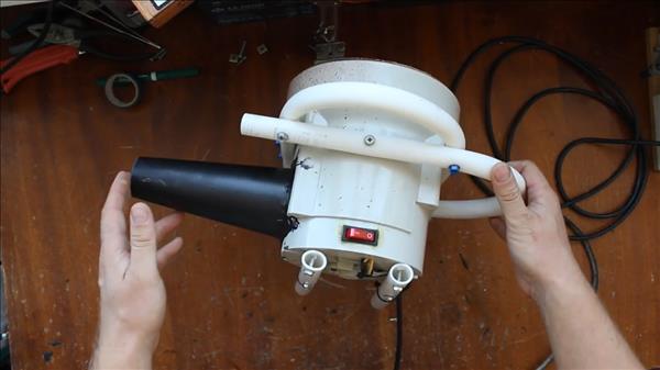 Les fils sortent vers le boîtier et le moteur est fixe. Ensuite, mettez des bandes élastiques et un boîtier pour vous protéger contre les dommages. À une extrémité, l'air est aspiré et à l'autre extrémité.