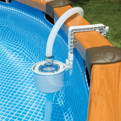 - la présence dans la piscine d'un appareil de nettoyage - un skimmer équipé de filtres profonds, le besoin se fait sentir lors du nettoyage avec un modèle manuel;