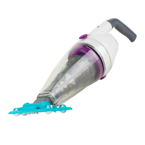 Aspirateurs à main diffèrent par une conception simple composée d'une poignée, d'une brosse et de son propre système de nettoyage, d'une pompe. Certains modèles n'ont pas leur propre unité de filtration, donc pour le fonctionnement complet de l'unité, il est nécessaire de se connecter à un skimmer - un système de filtrage de la piscine. La connexion au secteur se fait par câble. Étant donné que la pression de travail est fournie par sa propre unité de pression, qui est la pompe du robot, le débit de l'unité peut aller jusqu'à 16 tonnes d'eau par heure. Le principal avantage des modèles à main est un prix abordable. L'inconvénient est l'utilisation uniquement dans les petites piscines.