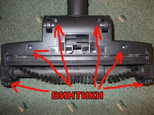- La brosse étant composée de deux moitiés, il est nécessaire de les déconnecter avec un tournevis. Ils sont fixés avec plusieurs boulons (comme indiqué sur la photo ci-dessous).