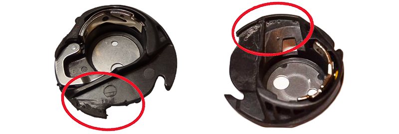 - Le fil supérieur s'enroule, également en raison de l'usure du ressort du boîtier de la canette, qui n'est généralement pas réparable; une nouvelle pièce est remplacée.