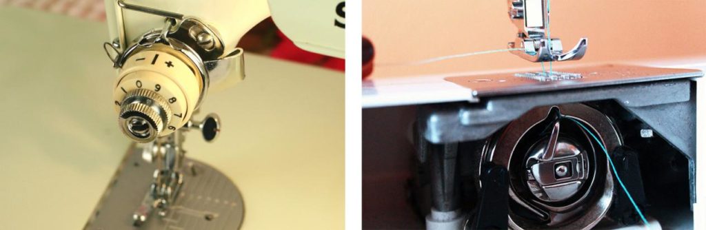 Souvent, la confusion se produit en raison de la tension inégale des fils: le supérieur est réglé avec des plaques de correction, dont la distance est déterminée par l'interrupteur monté sur le corps de la machine, et le inférieur dans le boîtier de la canette.