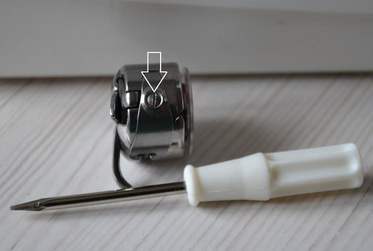Si le fil de la canette ne retient pas le fil supérieur et rampe pendant la couture, dans le meilleur des cas, les points sembleront désordonnés et, dans le pire des cas, ils s'emmêleront. Dans ce cas, vous devez augmenter la tension du fil inférieur en faisant glisser la plaque. Pour ce faire, serrez fermement la vis avec un tournevis sur le boîtier de la canette: