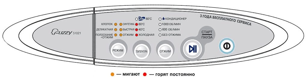 Si le fabricant ne fournit pas d'affichage dans l'appareil, le dysfonctionnement est affiché en utilisant un éclairage LED: LED clignotantes indiquant une température de 60 ° C, 40 ° C et lavage à l'eau froide.