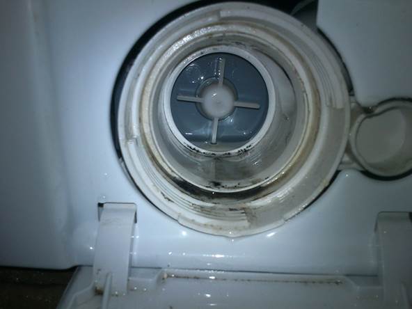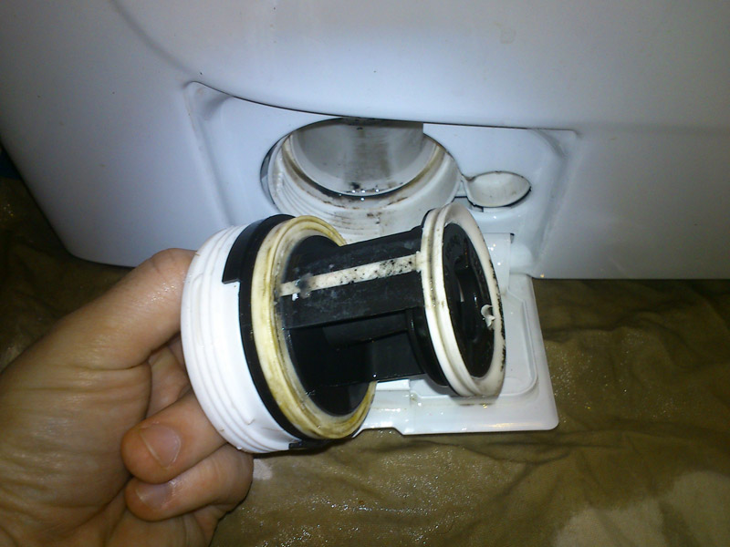 - La nécessité de rincer le filtre de vidange. Sa fonction principale est de prévenir la pollution des eaux usées, de sorte que tous les petits débris (boutons, fils, poils d'animaux) y restent. Il est préférable de le nettoyer tous les 6 mois. Mais dans la pratique, les propriétaires de machines automatiques font rarement cela, donc le contenu du filtre devient acide et une odeur apparaît.