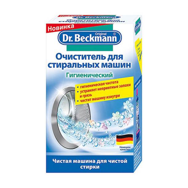Si vous ne souhaitez pas mélanger et sélectionner des composés chimiques par vous-même, vous pouvez acheter dans le magasin des moyens spéciaux pour laver les machines à laver. Il peut s'agir de poudres et de gels de tartre, de champignon, de moisissure. Parmi eux: Calgon, Dr. Beckmann, Scrubman et autres.