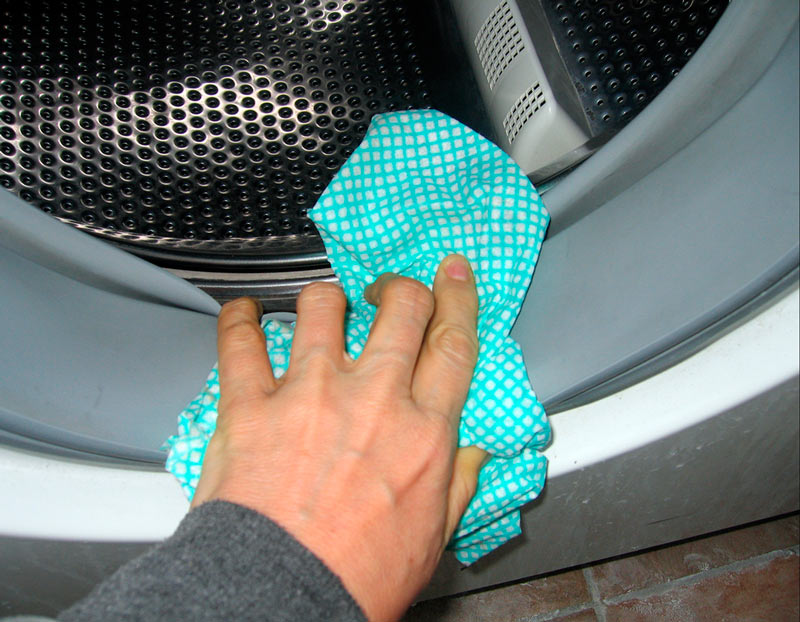 - Après le lavage, ouvrez les portes et rincez le tambour à l'intérieur. Il peut contenir des résidus de calcaire qui doivent être éliminés. Essuyer le joint en caoutchouc, le toit ouvrant.