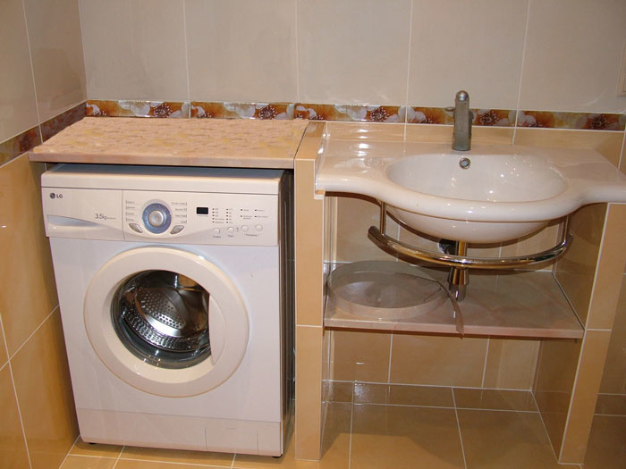 L'emplacement de l'appareil électroménager sous le comptoir semble le plus acceptable. Si un comptoir est utilisé pour installer l'évier, la machine à laver sera idéalement en dessous.Bien que, dans ce cas, une certaine reconstruction du système d'alimentation en eau sera nécessaire.