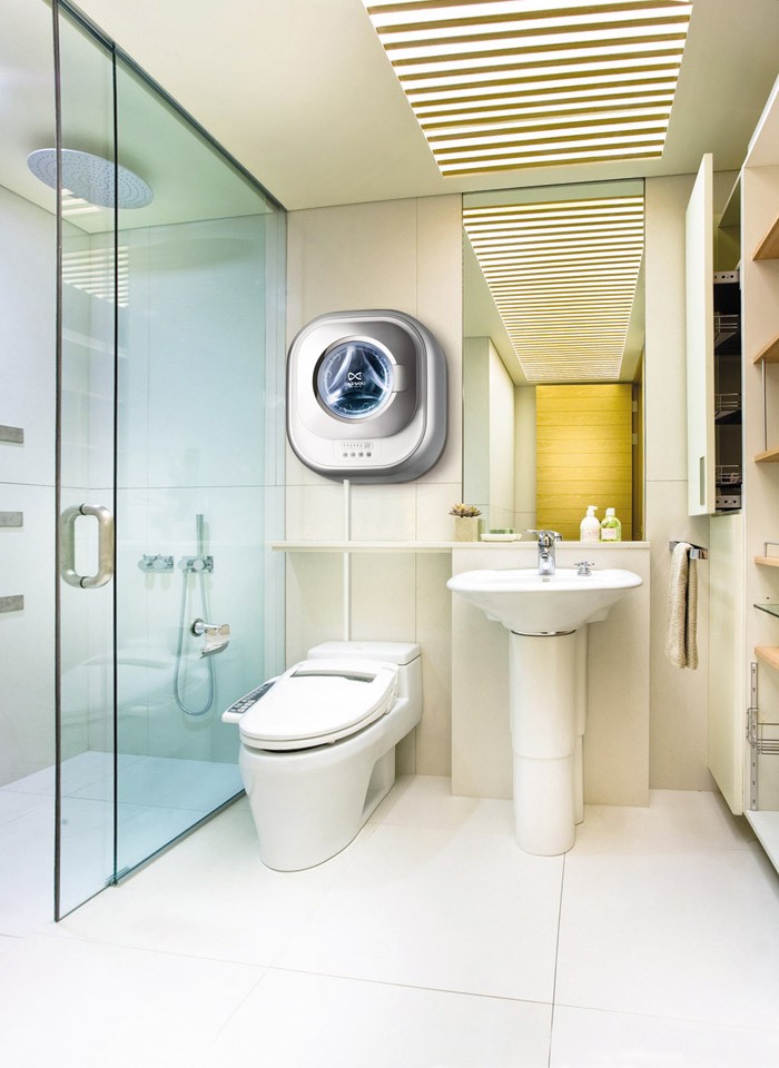 De plus, de nombreuses personnes choisissent la salle de bain comme un espace technique pour l'installation du lave-linge car elle est pratique. Après avoir retiré les vêtements sales, vous pouvez immédiatement les mettre dans l'appareil.