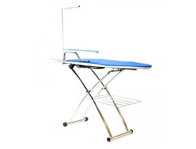 Ce modèle de planche à repasser est fabriqué avec un support sous le générateur de vapeur est considéré comme fonctionnel et très pratique.Le comptoir a de grandes dimensions de 125x42 cm, ce qui vous permet de repasser des objets de toute taille.