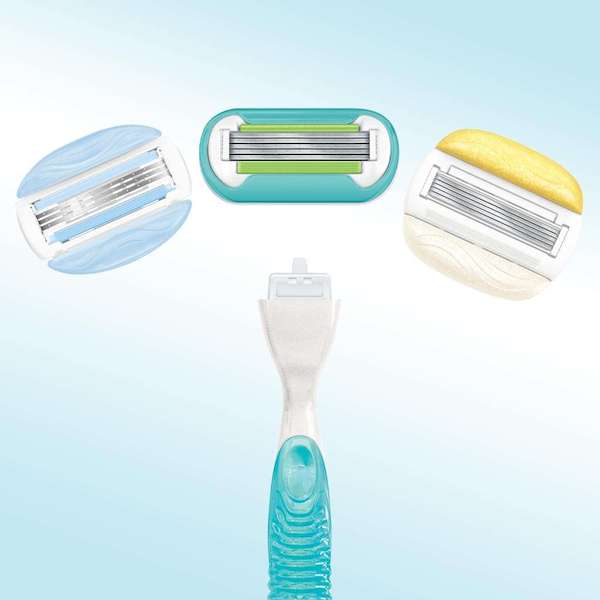 - Machines à cartouches interchangeables. Ils sont considérés comme des dispositifs féminins modernes et sûrs pour enlever les poils des jambes, des aisselles et de la zone du bikini. Ils ont cinq lames flottantes, grâce auxquelles tous les poils sont capturés sans exception. Et la présence d'un ruban hydratant protecteur empêche les coupures sur la peau et améliore la glisse de l'appareil lui-même. Au besoin, cartouches remplaçables. Mais en raison de lames très tranchantes, cela devrait être fait extrêmement rarement.
