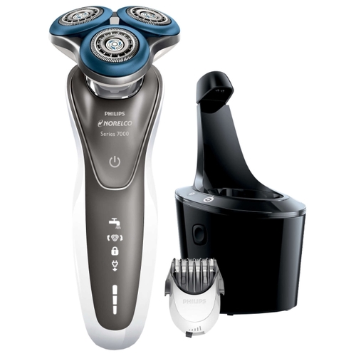 - Rasoir Philips S7720 série 7000 avec un coût moyen de 18 tr Les têtes à cinq directions du rasoir électrique rotatif DynamicFlex moderne ont un revêtement spécial Comfort rings, qui se compose de nombreux micro-granulés qui créent une couche souple et souple. Ce revêtement procure une glisse douce sur la peau du visage, ce qui réduit considérablement le risque d'irritation même pour les propriétaires de peau très sensible. Les technologies SkinGlide et DualPrecision sont également soutenues dans la fabrication de cet appareil.Un avantage significatif de ce modèle peut être appelé la présence d'une tondeuse amovible, dont l'utilisation correcte permet de tailler très précisément le whisky, la barbe ou la moustache, ainsi qu'un système de quai conçu pour charger et nettoyer l'appareil. La capacité de la batterie, qui atteint une charge complète en 1 heure, est suffisante pour 50 minutes d'utilisation. Ce rasoir est idéal pour le rasage à la fois sec et humide, après quoi la tête de travail peut également être lavée sous l'eau courante;
