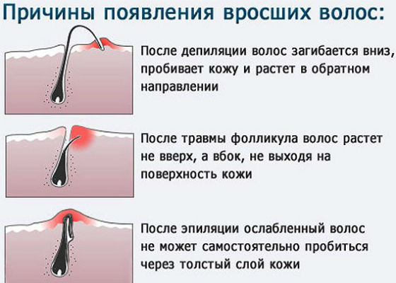 - Souvent, après l'épilation, l'acné se forme sans être associée à des poils incarnés. Dans la plupart des cas, ils étaient antérieurs, ils n'étaient pas visibles derrière la végétation. Pour leur traitement, vous devez utiliser du savon de maison et avec l'effet inflammatoire de la pommade salicylique.