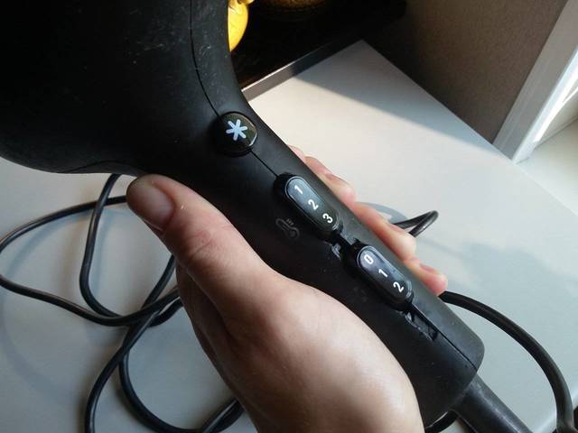 Le débit d'air dans les appareils électroménagers peut le plus souvent être réglé à un niveau bas, moyen et élevé en déplaçant l'interrupteur à bascule dans la position appropriée. Les modèles professionnels ont très souvent non pas trois, mais six vitesses d'alimentation en air, ce qui permet d'utiliser l'équipement de manière plus individuelle pour chaque client. La température de la plupart des appareils peut être modifiée de 70 à 120 degrés Celsius de la même manière à l'aide d'un interrupteur spécial. La température maximale n'est généralement pas utilisée très souvent, seulement si nécessaire, elle s'adaptera qualitativement, en utilisant un appareil pour sécher les cheveux au lieu des fers et des ploes. Basse température, ainsi que fonction air froid, utilisé pour laisser les mèches refroidir après la pose dans la forme qui leur était donnée et ainsi la coiffure conservait son apparence plus longtemps. Par conséquent, le plus souvent lorsqu'il est utilisé, quel que soit le professionnalisme de l'appareil, il est utilisé en moyenne des indicateurs de température et de puissance, les plus adaptés au séchage.