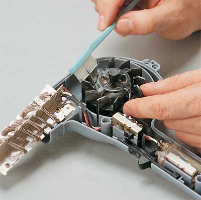 Photo: le nettoyage des lames et l'élimination des poils et de la saleté peuvent être effectués par vous-même après avoir démonté le sèche-cheveux.