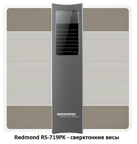 Redmond RS-719PK - les meilleures balances au sol sans fonctions de diagnostic. Il s'agit d'un appareil ultra-mince (18 mm d'épaisseur) avec un design attrayant. Une caractéristique du modèle est la charge de la lumière du soleil. C'est dans certains cas très bon - il n'est pas nécessaire d'acheter des piles, en revanche, le pesage ne peut commencer qu'après un certain temps, lorsque la balance est chargée et allumée.