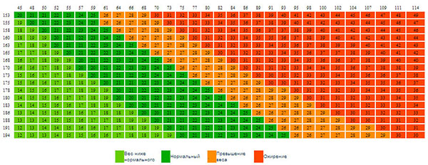 Tableau récapitulatif pour déterminer l'IMC (indice de masse corporelle)
