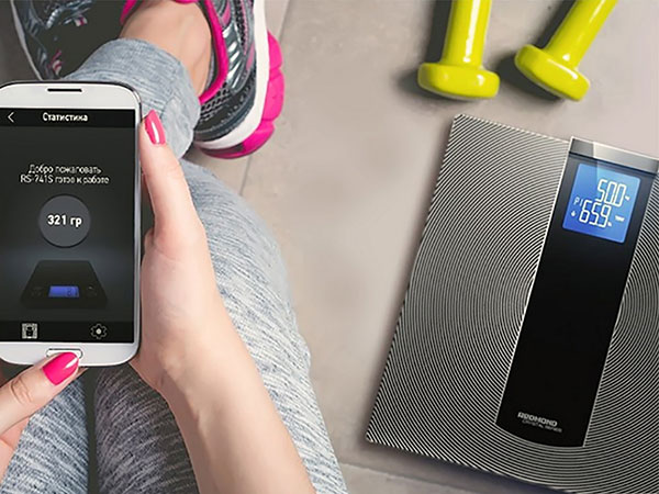 Les balances ont un design d'espace élégant. Lorsqu'il est éteint, l'écran ne peut pas être détecté. Les inscriptions et les numéros ne sont visibles que lorsque l'état est activé. La surface est en verre trempé et le fond est en plastique antichoc. Une grande précision n'est obtenue qu'à l'état stationnaire sur une surface plane. Fonction pratique supplémentaire intégrée sous la forme de la possibilité de synchronisation sans fil avec les smartphones avec différents systèmes d'exploitation. Le principal plus abordable est le prix.