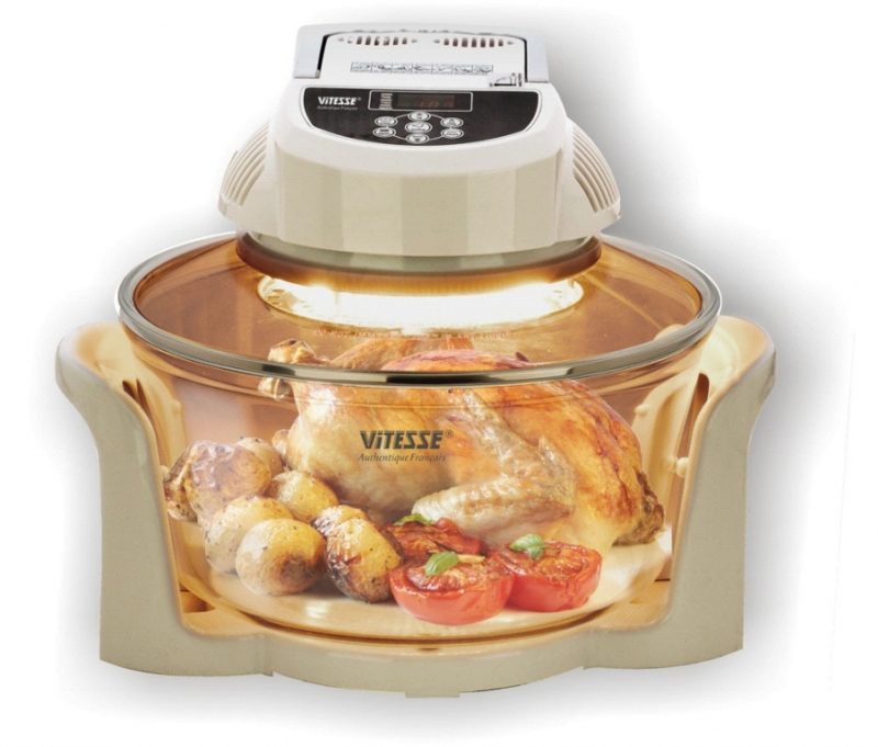 Il s'agit d'un appareil compact qui peut tenir dans un petit coin cuisine. L'appareil peut facilement remplacer un grille-pain, une yaourtière, un gril et une double chaudière. Le principal avantage de l'appareil est qu'en raison du traitement de l'air chaud pendant la cuisson, toutes les vitamines utiles sont stockées dans les produits.