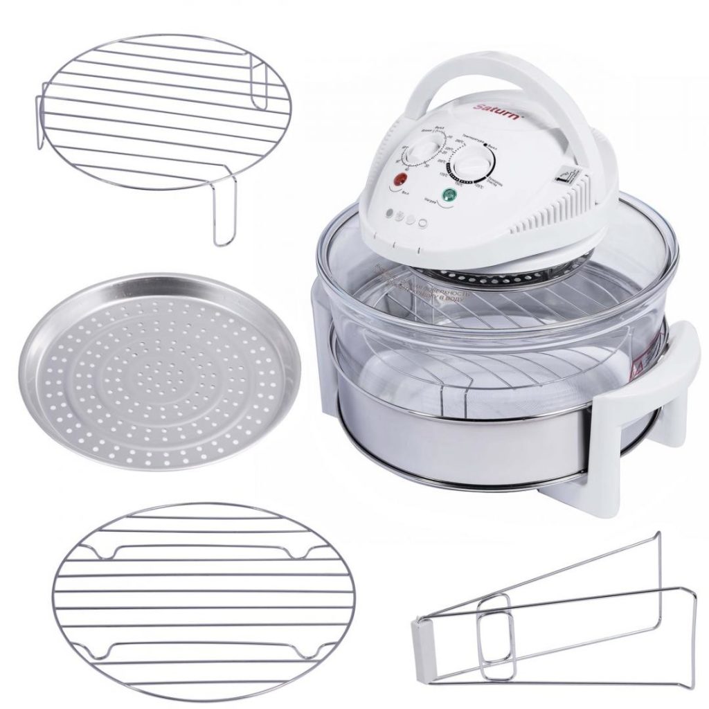 - vue de l'élément chauffant. Cela peut être l'esprit de l'espèce - un radiateur en métal et une lampe halogène en verre. Le premier a une résistance élevée à l'usure, mais un chauffage lent. Le second est fragile, sa durée de vie n'est que de deux à trois ans, mais en même temps il ne subit pas d'oxydation et cuit les aliments beaucoup plus rapidement;