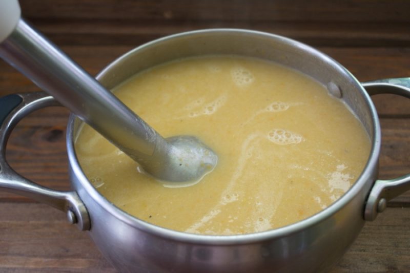 Un avantage évident du mixeur plongeant est sa polyvalence. Avec son aide, vous pouvez rapidement moudre et mélanger tous les ingrédients au moment de la cuisson de plats tels que les soupes en purée. Dans ce cas, le liquide ne sera pas pulvérisé sur les objets et surfaces adjacents. Si l'ensemble d'un tel appareil comprend des buses interchangeables supplémentaires, il peut être appelé en toute confiance une mini-moissonneuse-batteuse, car il vous permettra de hacher, hacher ou hacher divers types de produits très rapidement et efficacement. La puissance des mélangeurs atteint 1000 watts, ce qui permet une très grande vitesse de rotation du couteau pendant le fonctionnement. Cela est particulièrement nécessaire pour le broyage complet de produits solides. Puissance d'un batteur à main conventionnel peut atteindre un maximum de 400-500 W, à l'arrêt - 700 W, ce qui indique que la vitesse de rotation des buses de cet appareil est presque 2 fois inférieure. Et c'est la deuxième réponse la plus importante à la question de savoir comment le mélangeur diffère du mélangeur. La faible vitesse de rotation des buses du mélangeur, ainsi que leur forme, est leur avantage significatif, car elle permet au mélange d'être saturé d'air pendant le fouettage, ce qui le rend léger et aéré.