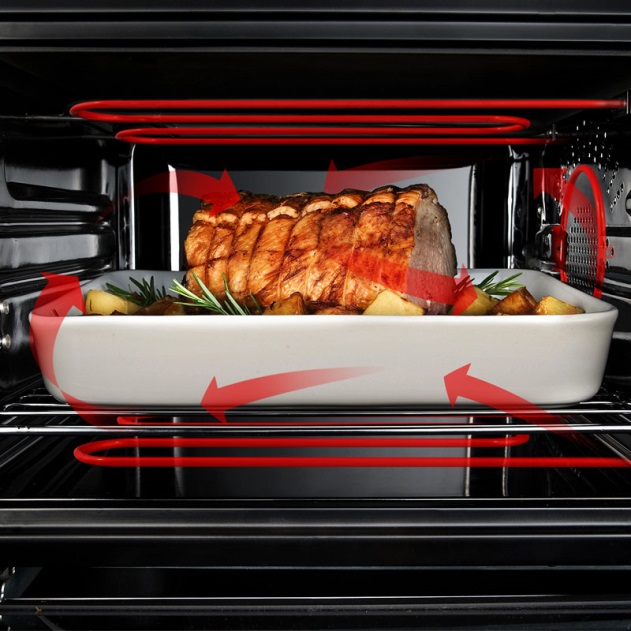 Les fours plus chers sont équipés d'une autre fonction supplémentaire de chauffage par convection. Cette méthode de cuisson fonctionne sous l'influence d'un ventilateur qui distribue uniformément l'air chaud à travers le four. La convection vous permet d'obtenir une cuisson uniforme des aliments, l'hôtesse oubliera ce qu'est une croûte brûlée et, en même temps, le plat est cru à l'intérieur.