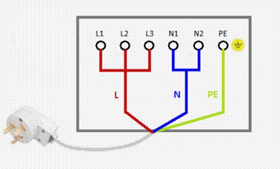 - fil marron - la phase qui se connecte aux bornes L 1, 2, 3;