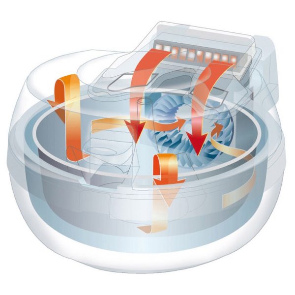 - Réglez la température de cuisson souhaitée. À ce moment, en haut de l'appareil, un élément chauffant est allumé, qui chauffe l'air dans l'appareil à 80-200 degrés. À l'aide d'un convecteur, cet air circule à l'intérieur de l'appareil, faisant frire uniformément les aliments.