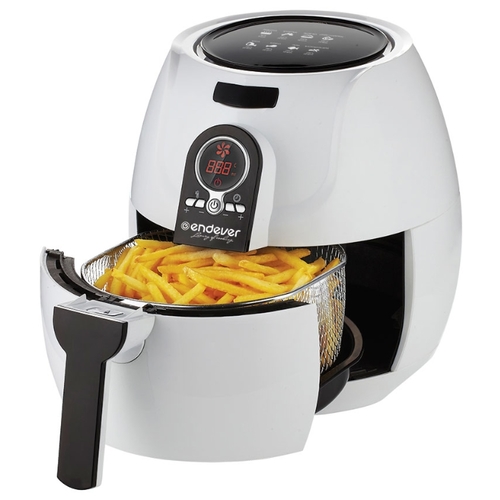 Un appareil moderne et économique fera des frites avec seulement 3% d'huile. La présence d'une spatule originale pour mélanger les ingrédients répartira uniformément l'huile sur toute la surface des aliments. Le couvercle de l'appareil, toujours de conception originale, est équipé d'une sortie spéciale pour l'excès de vapeur, ce qui plaide en faveur de la sécurité de l'appareil. La puissance de l'appareil est de 1400 watts, la capacité du bol est de 1 kg. L'élégant boîtier combiné en plastique et en acier sera un ornement dans n'importe quelle cuisine. Contrôle électronique des appareils, il y a une minuterie intégrée.