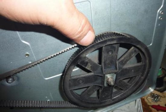 - Installez une nouvelle courroie sur la poulie du moteur. Roulez vos dents sur une grande roue.